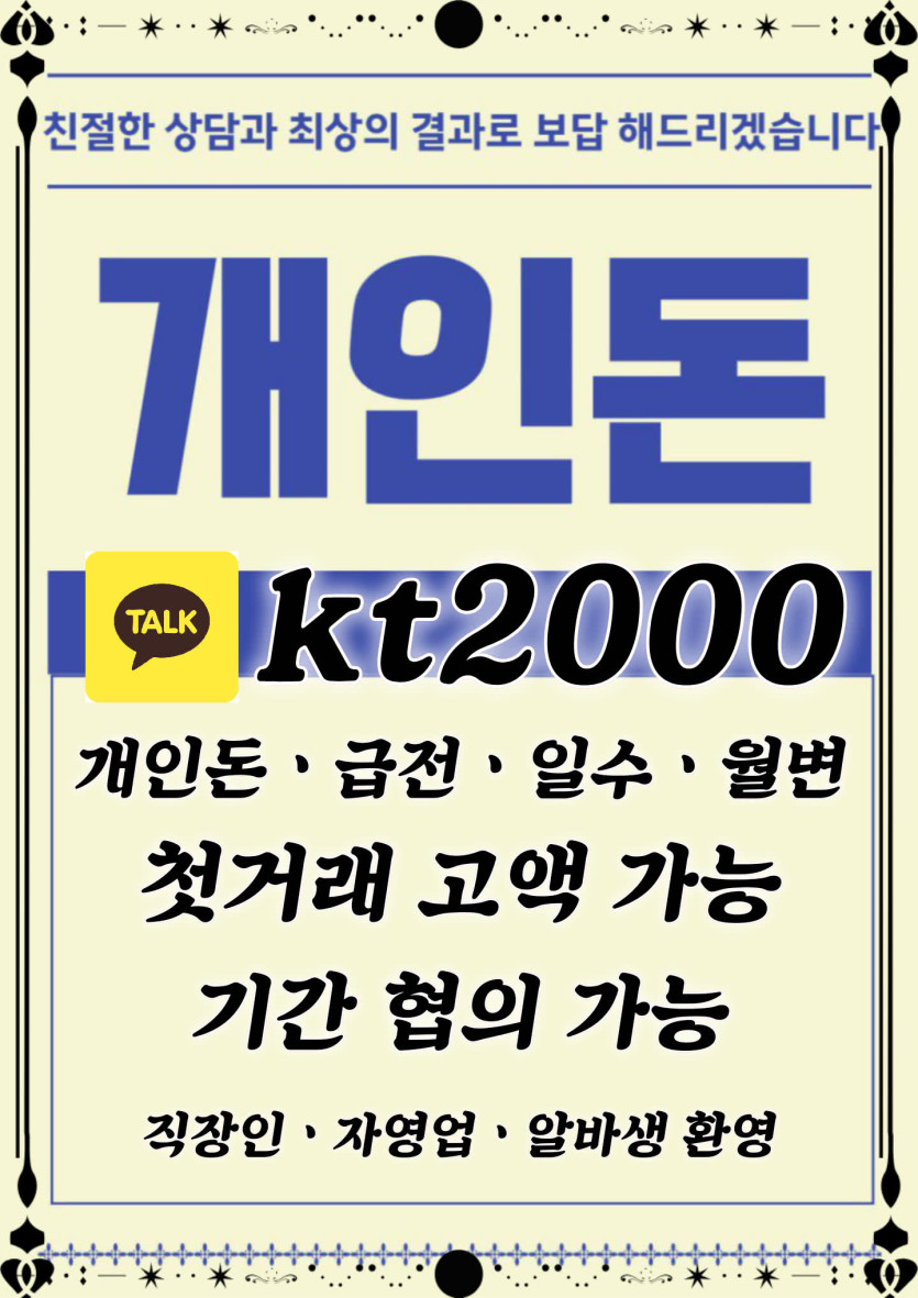 소액 급전 필요한순간 카톡 kt2000 개인돈 급전 일수 대출